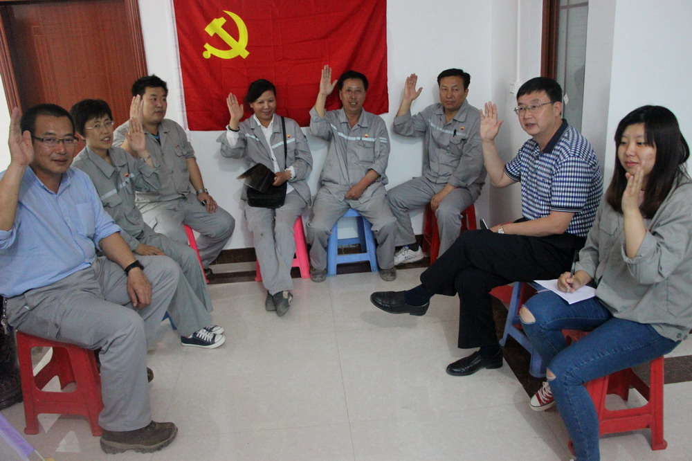 我公司監(jiān)理的中海油惠州煉化“三聚”項(xiàng)目,去年末開工,現(xiàn)場(chǎng)近28名員工,其中黨員8人。隨著工程進(jìn)展人員還要增加,建立基層黨組織,發(fā)揮黨員先鋒模范作用,出色的為業(yè)主服好務(wù),是公司黨委工作目標(biāo)。由黨委提名,任潤東、劉金剛、韓英麗三人組成黨支部。選舉通過后,支部書記任潤東做了表態(tài)發(fā)言,黨委書記孫學(xué)良就本項(xiàng)目意義,黨員義務(wù)和責(zé)任做了講話。