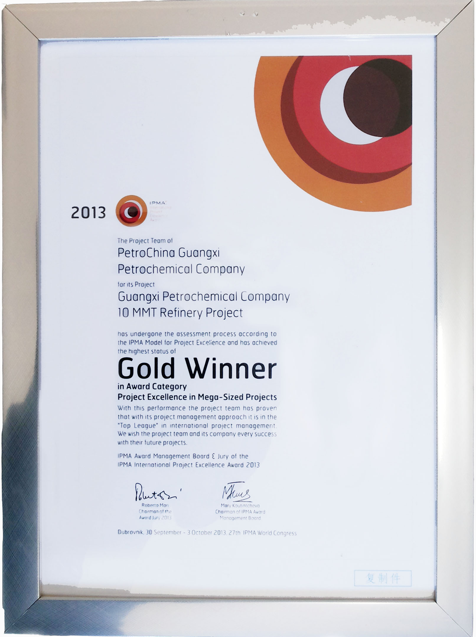 我公司承接了中國石油廣西石化千萬噸煉油項(xiàng)目,該項(xiàng)目榮獲IPMA國際卓越項(xiàng)目管理金獎(jiǎng)
